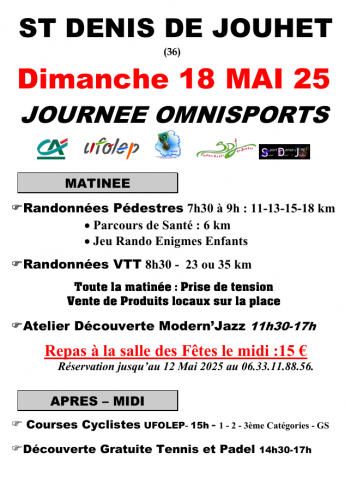 INFORMATION et réservation en appelant le 02.48.25.33.46 ou via la page internet « Hello Asso »