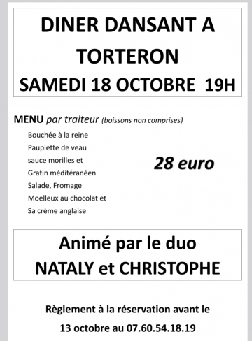 - Torteron (18320) Dîner dansant avec traiteur et duo musical pour nous abîmer une belle soirée