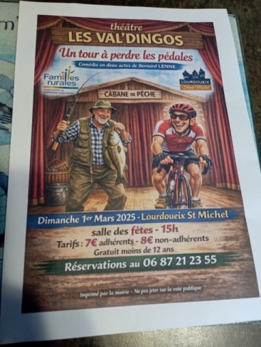 - Lourdoueix Saint Michel (36140) Lourdoueix St Michel: Repas berrichon le dimanche 22 février à midi salle des fêtes, animé par les copains des 3 cantons menu: kir, salade lentilles foie gras, pâté berrichon, salade, fromage, tarte aux barriauds, café tarif 20 euros adultes et 12 euros enfants, réservation obligatoire avant le 15 février