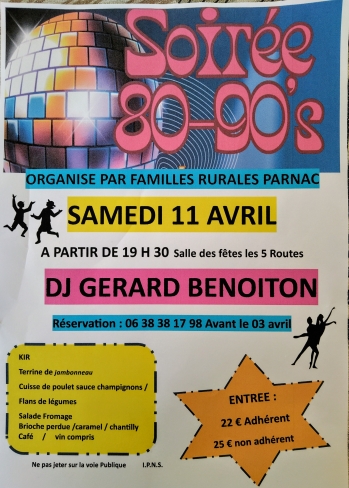 Soirée années 80 animé par dj Gérard BENOITON organisé par Familles Rurales Parnac