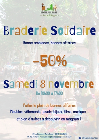 L’équipe de la Recycl'Régie - Régie de Quartier Bourges vous accueille samedi 8 novembre de 10h à 17h pour notre braderie solidaire !