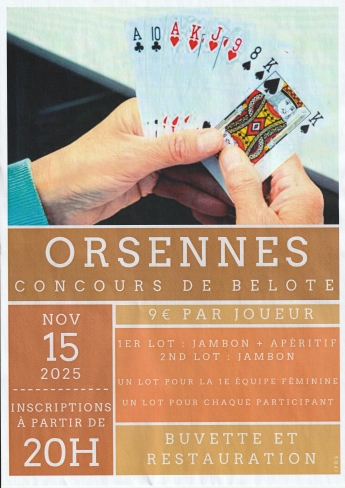 - Orsennes (36190) concours de belote à la salle des fête d'Orsennes