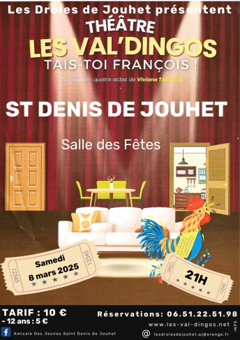 Les Drôles de Jouhet accueillent pour la soirée Théâtre & Humour du samedi 8 mars, la Compagnie Théâtrale Les Val'dingos.
